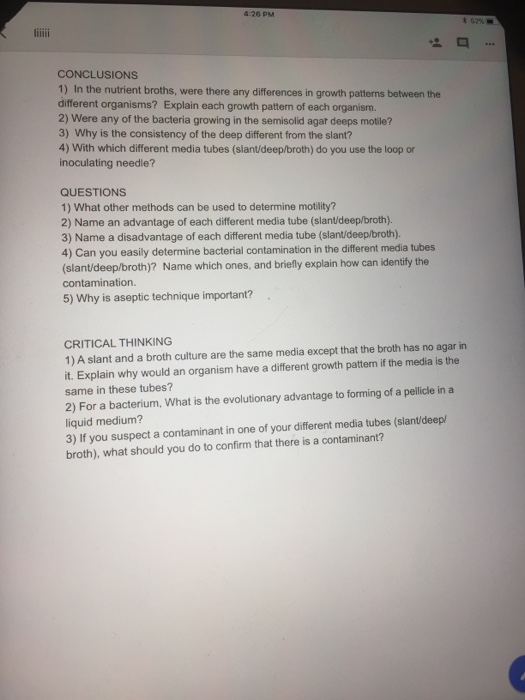 Solved 4 26 Pm Conclusions 1 In The Nutrient Broths Were Chegg Com